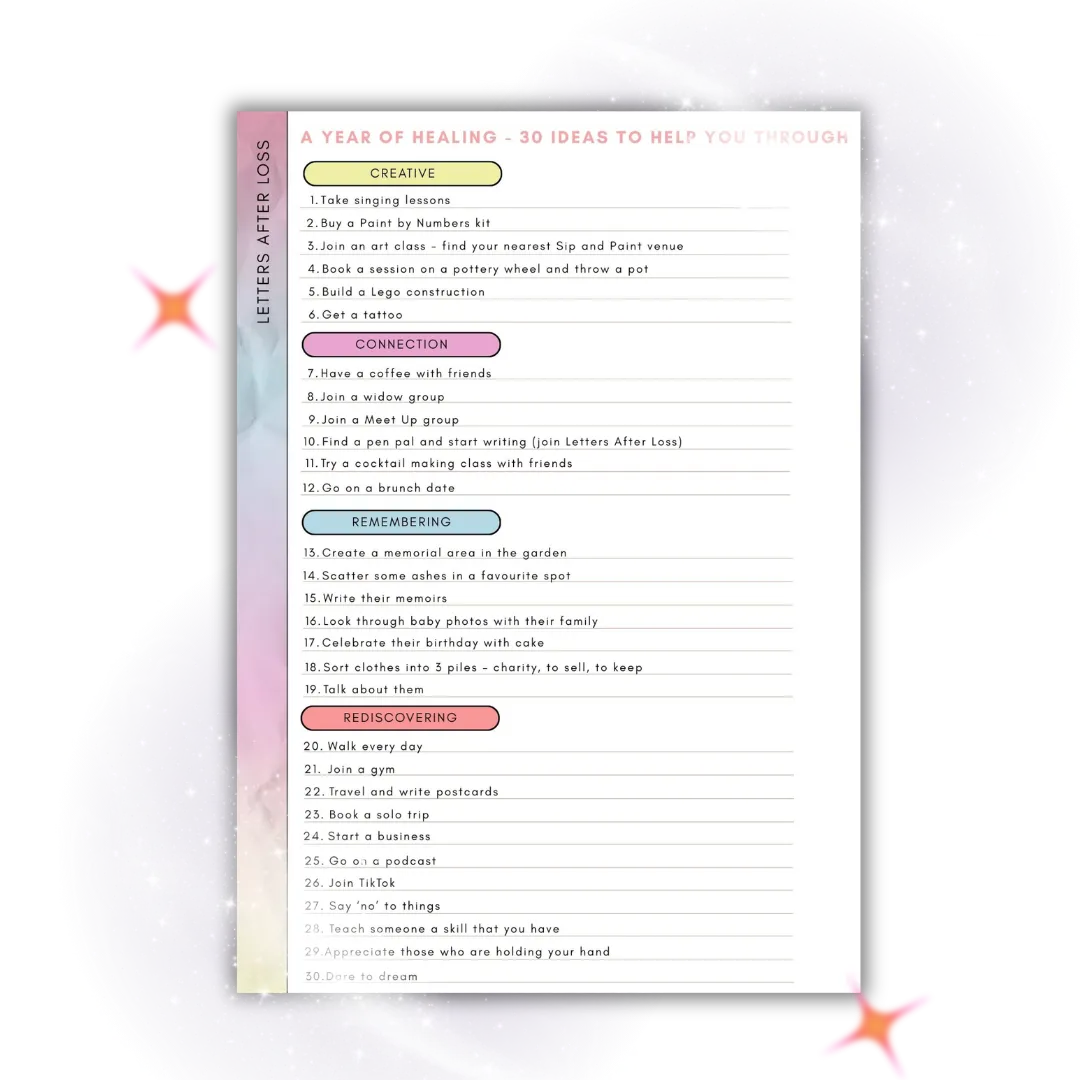 It's not a to-do list. It's not a grief programme. It's just thirty gentle ideas from one widow to another.