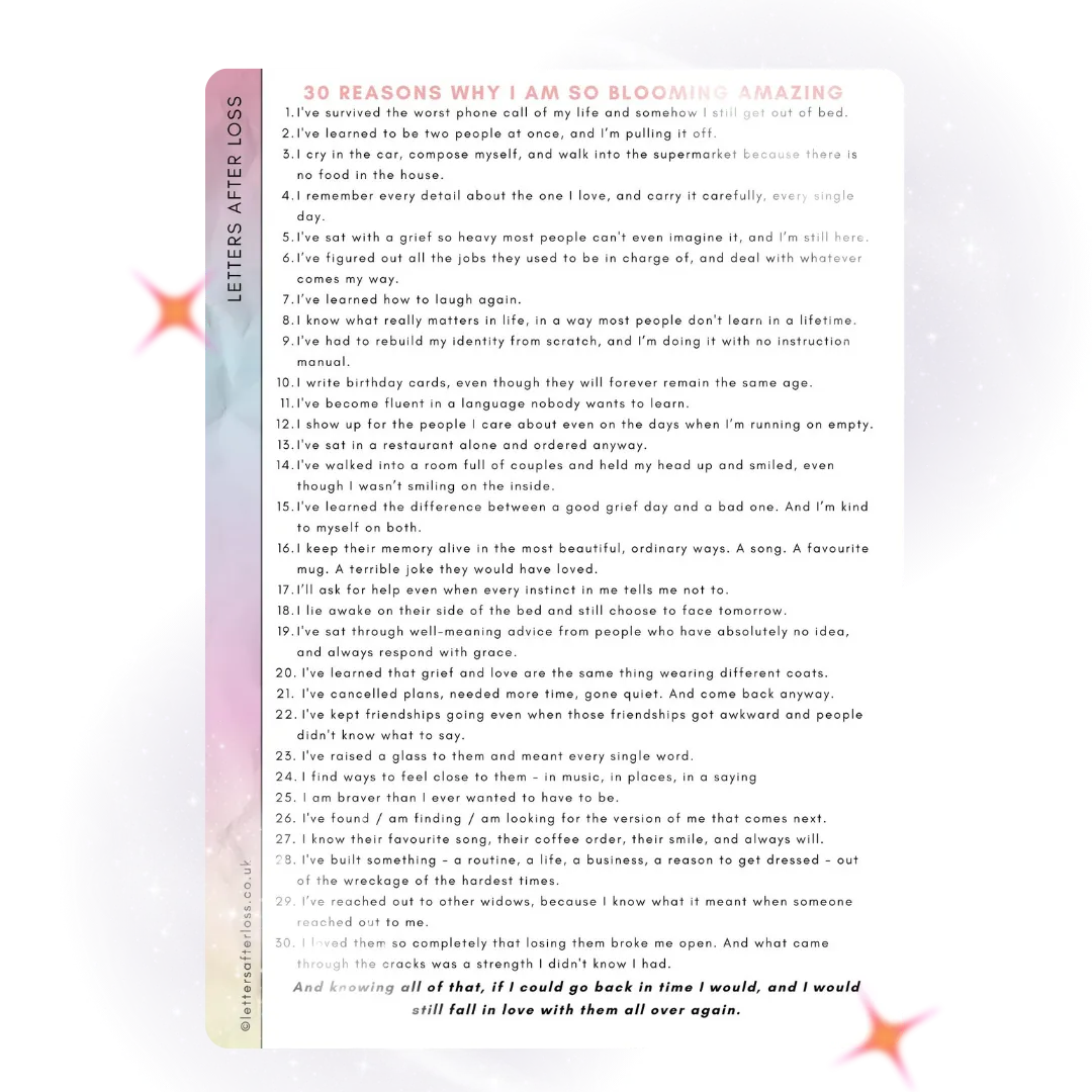 My name is Caroline. I'm a widow, a mum, and the founder of Letters After Loss - a community that connects widowed women through handwritten letters.